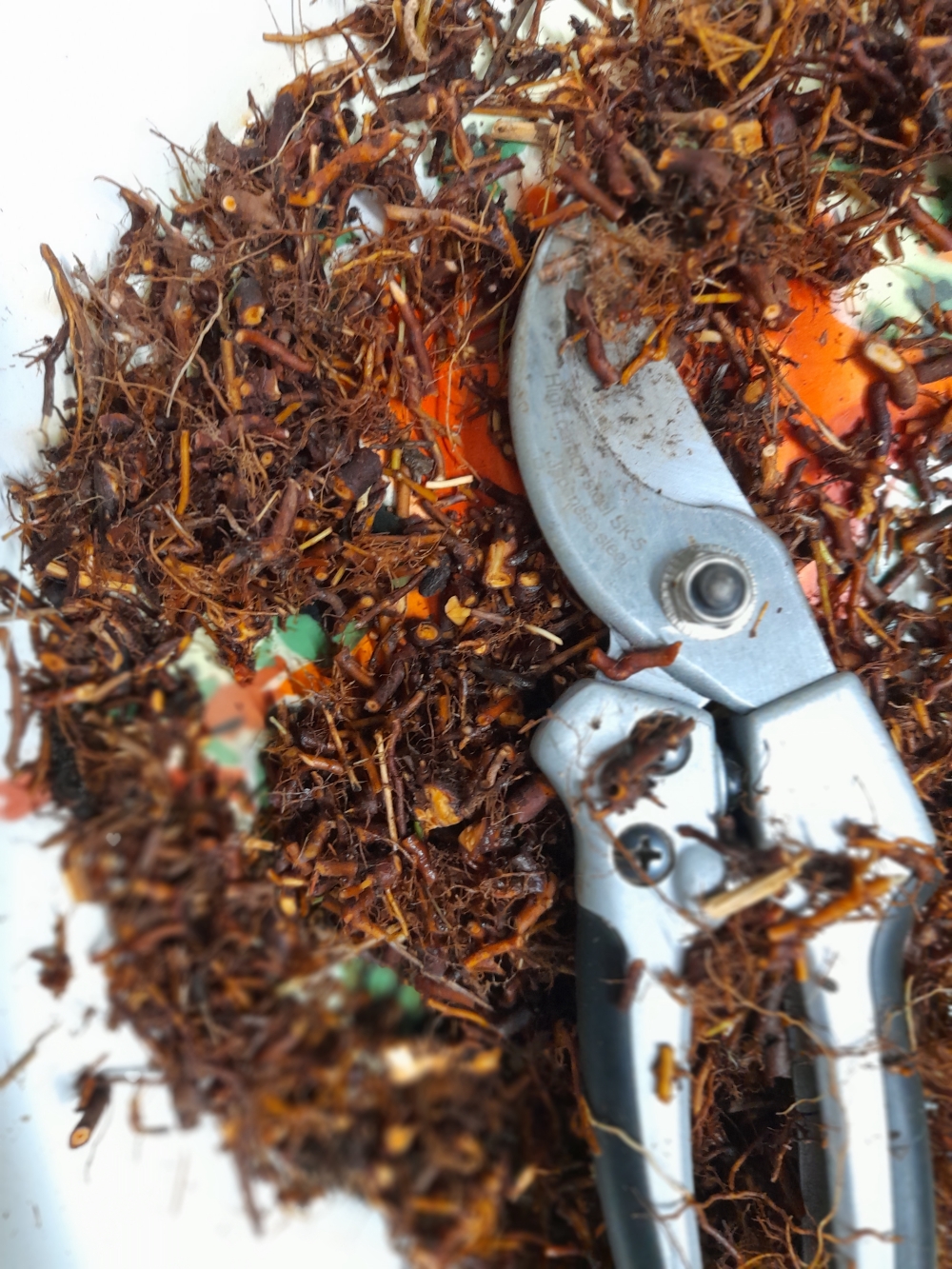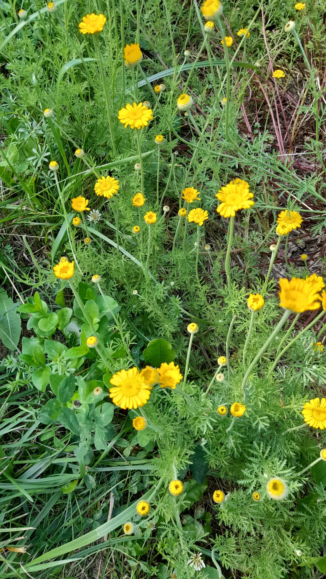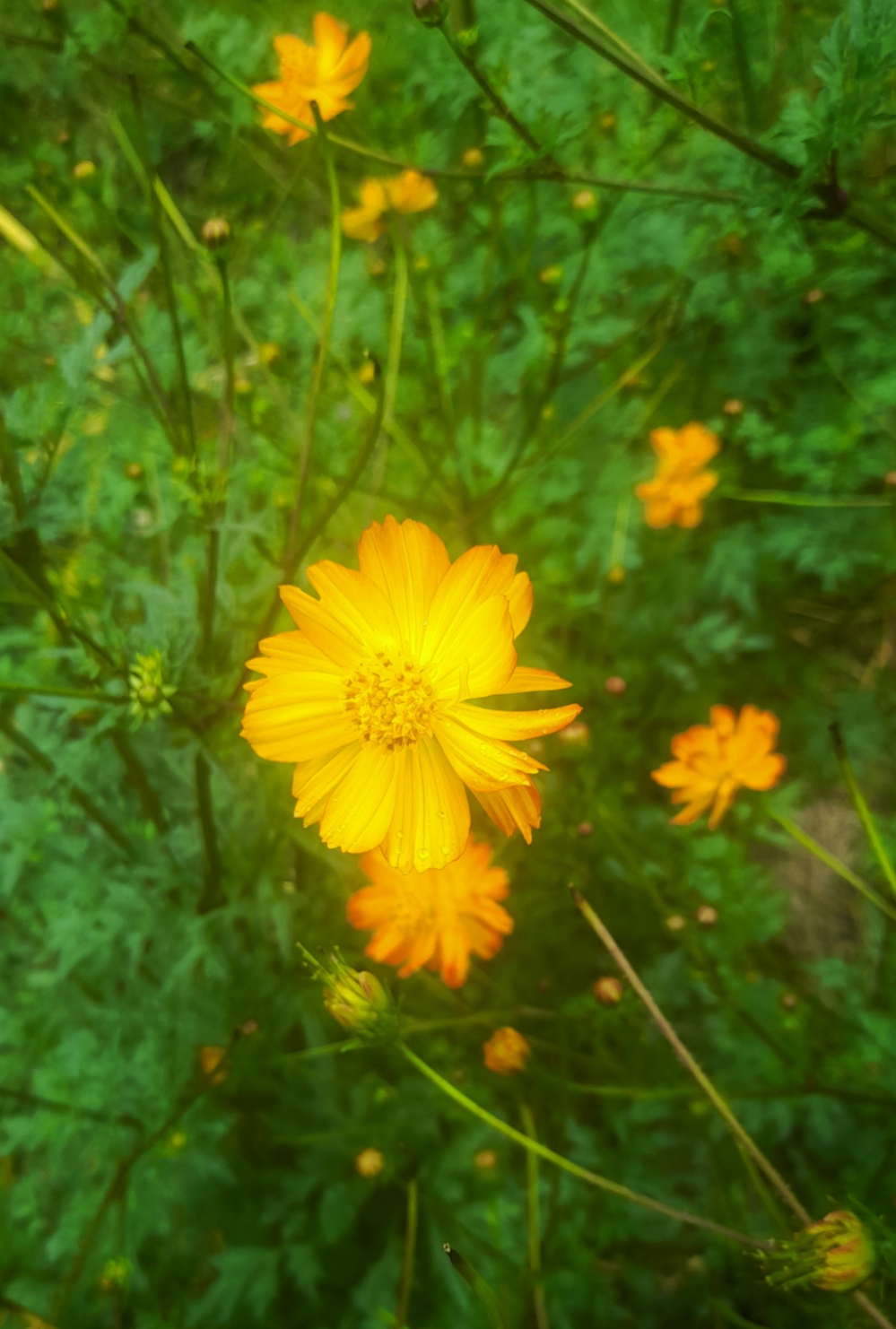 Dans le jardin sont cultivés le cosmos sulfureux, l'oeillet d'Inde, la camomille...qui sont récoltés tout l'été.