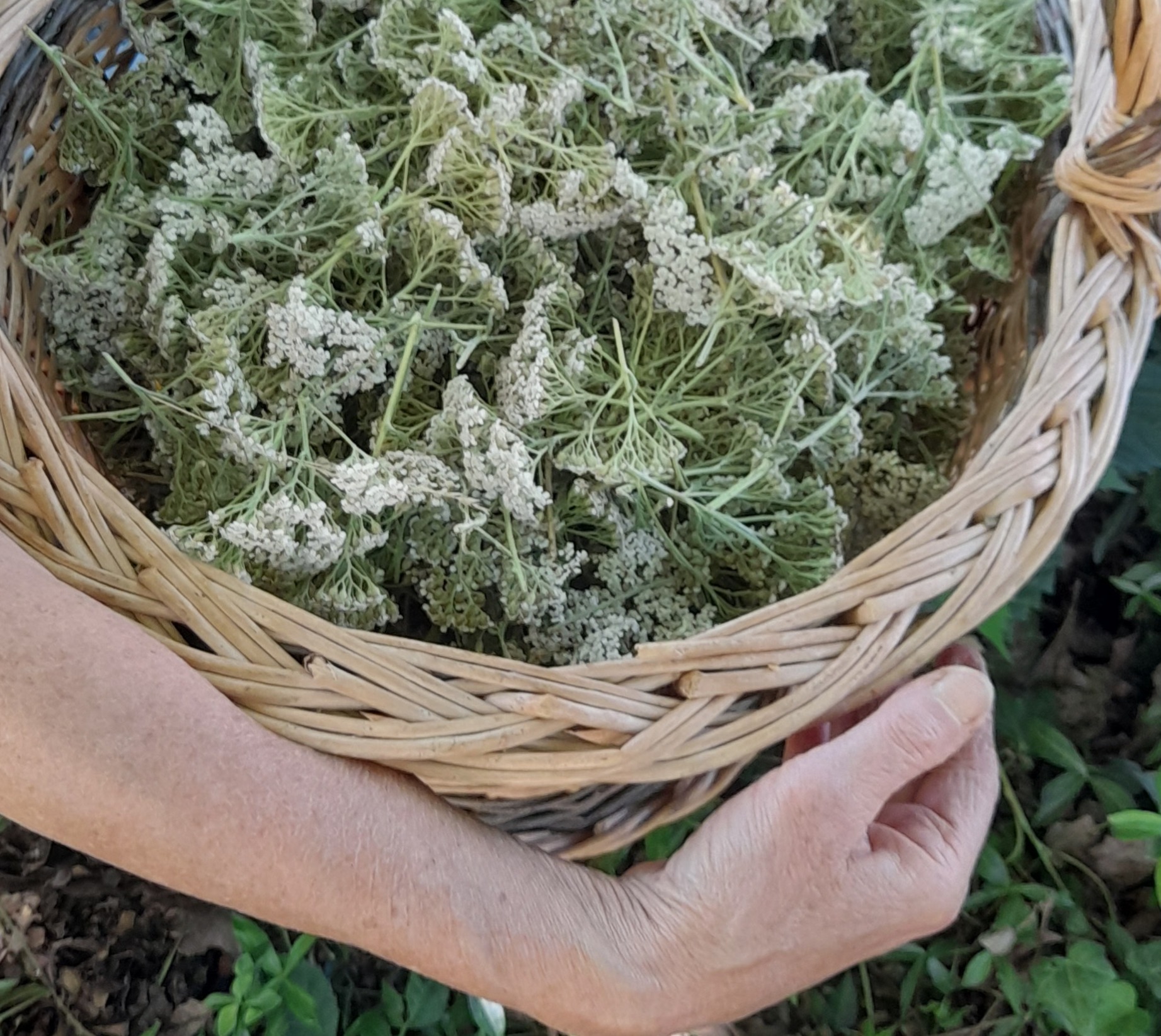 Partir en cueillette, c'est ce que je préfère : prés, talus, forêts recèlent des trésors de plantes tinctoriales. Bonnes chaussures, panier au bras, du printemps à l'automne, j'arpente les environs pour dénicher toutes les plantes tinctoriales à utiliser. Les coins de cueillette sont changés chaque année pour préserver la ressource. Achillée millefeuille, gaillet, armoise, acacia, hêtre...un trésor dans mon panier !